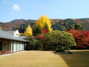 去年はちょっと早すぎたけれど、今年の京都は紅葉の真っ盛りに間にあった。不況で京都も観光客が減ったそうだが、それでも観光スポットだけは繁盛していた。鹿ヶ谷の『泉屋博古館』(住友のコレクション)にて、所蔵の「富岡鉄斎」展を観た。大げさな宣伝などしないので、幸いここまでは観光客も来ない。なのでユッタリと鉄斎鑑賞ができて最高の気分でしたよ。 写真は、後ろの東山連峰の紅葉が借景となる、なんとも贅沢な中庭です。左側の建物が展示室。 鉄斎は八十歳を過ぎてから「天才」の域に至った、大器晩成型の芸術家だなァと、今回もつくづく感じ入りましたね。どんなに素晴らしいかは、筆舌に尽くしがたい、とでも書くしかないか。日曜日は三人連れで観に行きましたが、昨日はまた観たくなっちゃって一人で訪れ、再び眼福を得ることができました。紅葉観光なんか退屈になるほど、鉄斎のほうは楽しくていつまでも見飽きないんだな。