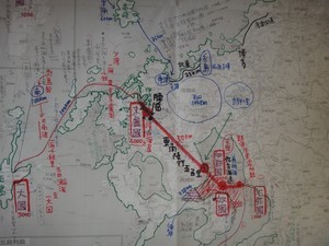 【奴國】から東へ百里の【不彌國】(ここは戸でなく1000余家とある)が港町という感じで、ここから船で出発して九州西岸を巡り《 南至投馬國水行二十日 》で「サツマ国」(50,000余戸)こと今の鹿児島に着く。また地名で思いつくのは、「ナ国(奴國)」の西側最先端にあるのが「ナがさき(長崎)」となったのではないだろうか…。ナがながおタイクツさまでした。